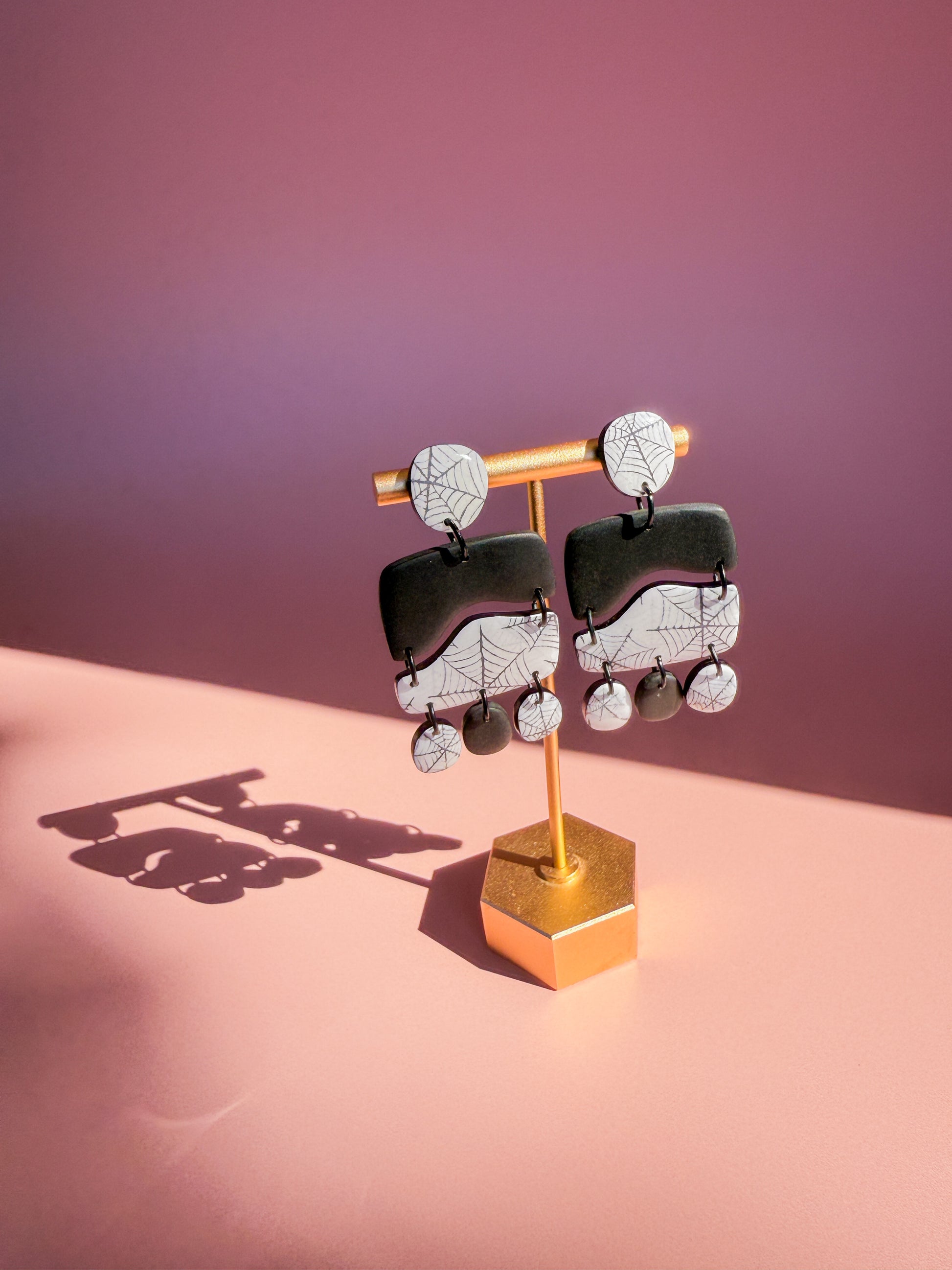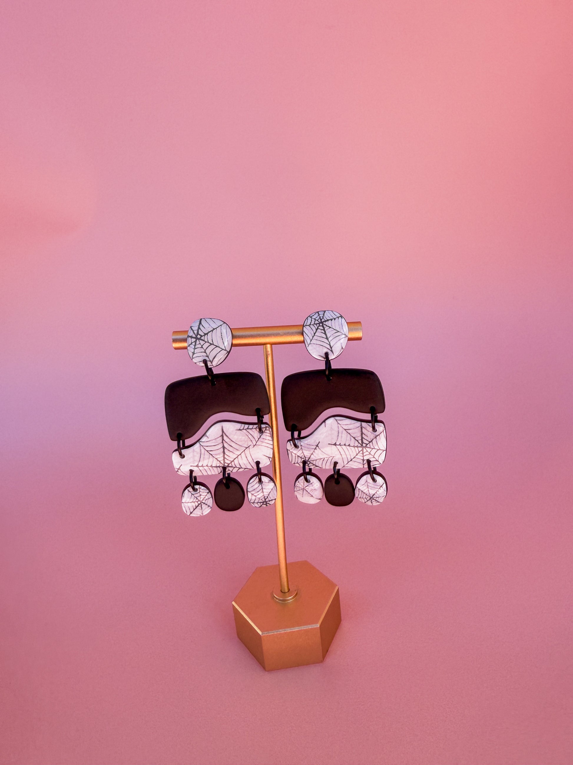 These Spiderweb Drip Dangles are the perfect mix of spooky and sophisticated — hand-detailed webs on layered polymer clay drops that shimmer in the light.