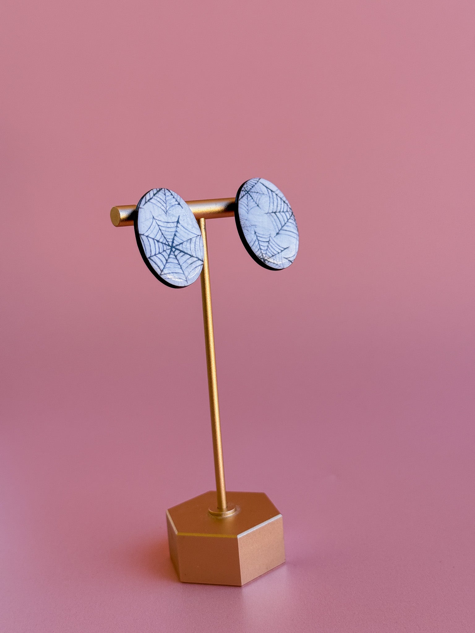 🖤Nickel-free brass posts + lightweight polymer clay and spiderweb design sealed with resin for durability.